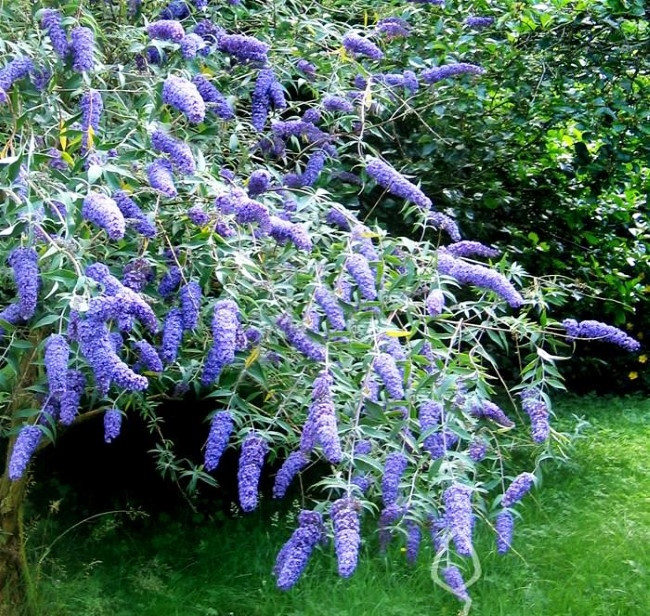 Буддлея давида Adonis Blue (Адонис Блю) Цветущий кустарник. Соцветия фиолетово-голубого цвета. Применяется для одиночных и групповых посадок. Буддлеи – это как правило, одиночные крупные кустарники, которые с середины лета становятся главной достопримечательностью сада. Из буддлеи также формируют необрезанные высокие живые изгороди, служащие, например, для прикрытия неприглядной стены сарая соседа, или как крупный элемент садового дизайна вместе с другими ранее цветущими кустарниками. Буддлея- это всегда беспроигрышное украшение вашего сада! Посадка буддлеи: Расстояние между саженцами должно быть как минимум около метра, так как декоративный кустарник буддлея имеет тенденцию разрастаться. На дне ямы для лучшей водопроницаемости желательно насыпать дренажный слой высотой 15 см из битого кирпича или крупного керамзита. Сверху насыпают еще один небольшой слой земли, перемешанной с компостом, а затем помещают корневой шар и засыпают землей. После посадки корневая шейка растения должна оставаться на уровне почвы. Уход за буддлеей: в основном – это рыхление грунта вокруг куста после полива, чтобы корни получали доступ к кислороду. Своевременное удаление отцвевших соцветий позволяет продлить цветение.