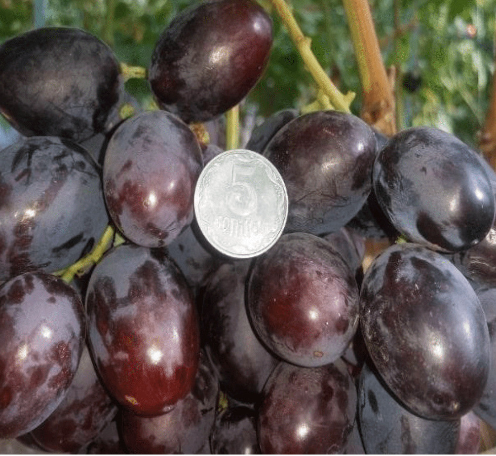 Виноград Шоколадний, селекції Голодриги П.Я. Батьківська пара: Ката – Курган х Кіровабадський столовий х Антей Магарача. Призначення сорту: Їдальня. Термін дозрівання: Середньопізній (130 -145 днів). Сила зростання: Сильнорослий. Квітка: двостатеві. Грона: Середній щільності, масою 800 – 2500 грам. Вага ягоди: 9 – 10 грам. Розмір ягоди: 23 х 31 мм. Форма ягоди: Овальна. Забарвлення ягоди: Червоне або червоно – коричневе. Консистенція м’якоті: М’ясиста, соковита. Смак (смак): Гармонійний з нотками шоколаду. Стійкість до захворювань: Середня.