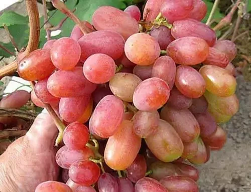 Виноград Ювілей Новочеркаська селекції Крайнова В.М. Батьківська пара: Талісман, кишміш Променистий. Призначення сорту: Їдальня. Термін дозрівання: Ранній початок серпня (110 – 120 днів). Сила зростання: Сильнорослий. Квітка: двостатеві. Маса грона: 800 – 2000 грам. Вага ягоди: 12 – 18 грам. Розмір ягоди: 2,5 – 4 см. Форма ягоди: Овально – подовжена. Забарвлення ягоди: Жовто – рожеве. Консистенція м’якоті: М’ясиста, соковита. Смак (смак) ягоди: Гармонійний. Сприйнятливість до захворювань: Середня. Стійкість до морозу: – 23 градуси.
