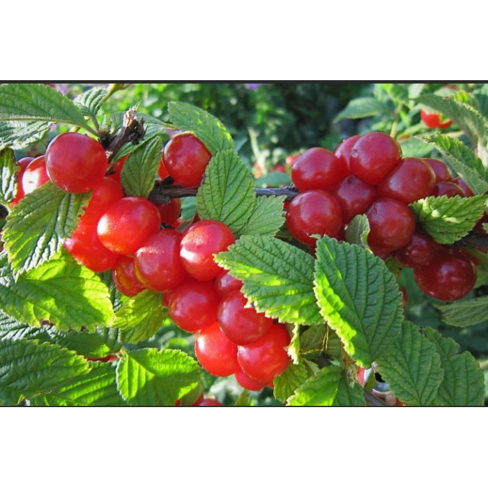 Кущ середній, розлогий. Скелетні гілки прямі, шорсткі. Однорічні пагони прямі, сірувато-коричневі. Розгалуження середнє. Плоди великі (середня вага 3 г). Форма округло-плюснута. Основне фарбування рожеве. М’якуш рожевий і щільний, солодко-кислуватий, приємного смаку. Сік світло-рожевий. Вміст цукрів – 9,2%, кислот – 0,8%, аскорбінової кислоти – 21 мг/100г. Кісточка дрібна, з гострим дзьобиком, напіввідстає. Плоди дозрівають 18-20 липня, універсального призначення, придатні для приготування варення, компотів, вина. Дегустаційна оцінка 4 бали. У плодоношення вступає на другий рік життя зростання щепи. Урожай із дворічного куща 200-600 г, а в період масового плодоношення 7,2-9,6 кг. Сорт характеризується високою врожайністю та імунітетом до “кишень вишні”. Зимостійкість куща задовільна