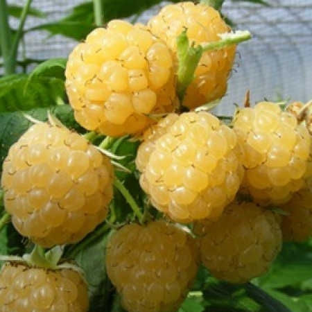 Ремонтантний високопродуктивний, жовтоплідний сорт. Ягоди великі (до 5 г), гарної форми, добре забарвлені, щільні та смачні, з тонким благородним ароматом. Стебла міцні, прямостоячі. Має солодкий, виразний смак.Посадка малини: Посадка саджанців проводиться в траншеї, дотримуючись відстані між рядами 1,5-2 м, відстань в ряду – 30-50 см. Можлива дворядкова посадка в траншеї з відстанню між рядками 30 см. По всій довжині ряду натягують дріт або шпагат.Догляд за малиною: Рекомендують постійне прополювання та розпушування ґрунту під кущиками для боротьби з бур’янами, але при такому способі коренева система рослини постійно травмується, що позначається на врожайності. Тому краще замульчувати ґрунт будь-яким органічним матеріалом (шаром у 8-10 см). Для цього можна застосувати перегній, тирсу, листя, подрібнену кору. Розкладаючись, вони послужать добривом, відсічуть бур’яни та збережуть вологу у ґрунті. Особливо зручно мульчувати обордюрені ряди в малиннику.Ґрунт для посадки: Малина любить родючі, легкі та добре дреновані ґрунти. Для вирощування її на піщаних та торф’яних ґрунтах необхідне щорічне внесення перегною та компосту для стимулювання діяльності мікроорганізмів. Важкі глинисті ґрунти для вирощування малини не підходять, оскільки коріння загниватиме. Кислотність ґрунту під малинником має бути нейтральною або слабокислою.Підготовка до зими: Мульчування – дуже важливий процес там, де нерідкі сильні осінні морози до встановлення снігового покриву, або, якщо через посушливість клімату, сніговий покрив недостатній для теплоізоляції ґрунту взимку. Найкраще годиться солома, прела листя, торф. Менш підійде звичайний компост – містить багато азоту, а також може спричинити підозрювання нижньої частини гілок під час теплої зими. Оптимальний шар мульчі 5-10 см.Місце для посадки: Місце під малину All Gold (Ол Голд) потрібно вибрати заздалегідь. Для світлолюбної культури краще підійдуть південні ділянки, захищені від сильних вітрів. Не підійдуть малині низинні ділянки, на яких застоюється волога, а також піднесені схили, де рослині не вистачить вологи, тому що коріння її розташоване за 15-20 см від поверхні ґрунту.