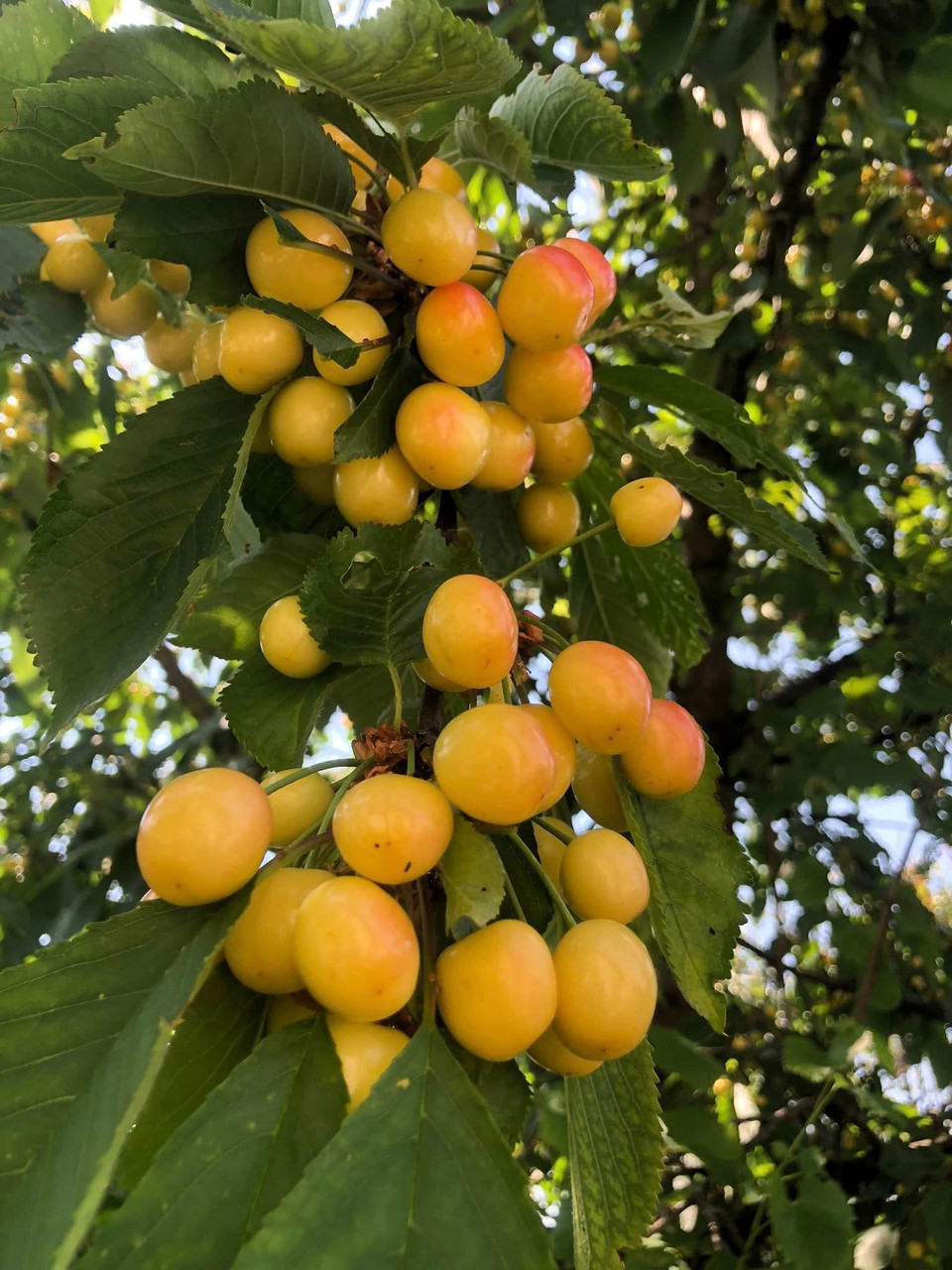 Дерева середньорослі (висота – до 4 метрів), що швидко ростуть. Крона піднята, округло-овальної форми, ступінь загущеності – середня. При відходженні від ствола скелетні гілки утворюють прямий або тупий кут. Пагони прямі, коричнево-бурого забарвлення, неопушені. Листя середньої величини, ланцетовидно-овальної форми, з довгозагостреною верхівкою та середньопилчастим краєм. Поверхня листової платівки гладка, глянсова, яскраво-зелена. Плодові утворення формуються в основному на букетних гілочках та вкорочених пагонах середньої величини (середня маса ягід – 3,8 г, максимальна – 4,5 г), округлої форми; основне забарвлення, як і покривне, жовте. На деяких ягодах утворюється дуже слабкий рожевий рум’янець. М’якуш жовтого кольору, щільний, соковитий, ніжний, смак — десертний, кисло-солодкий (більше виражена насолода, кислинка ледве вловима). Дегустаційна оцінка – 4,3 – 4,4 бала. Кісточка середнього розміру, округлої форми, гладка; відокремлюваність від м’якоті хороша